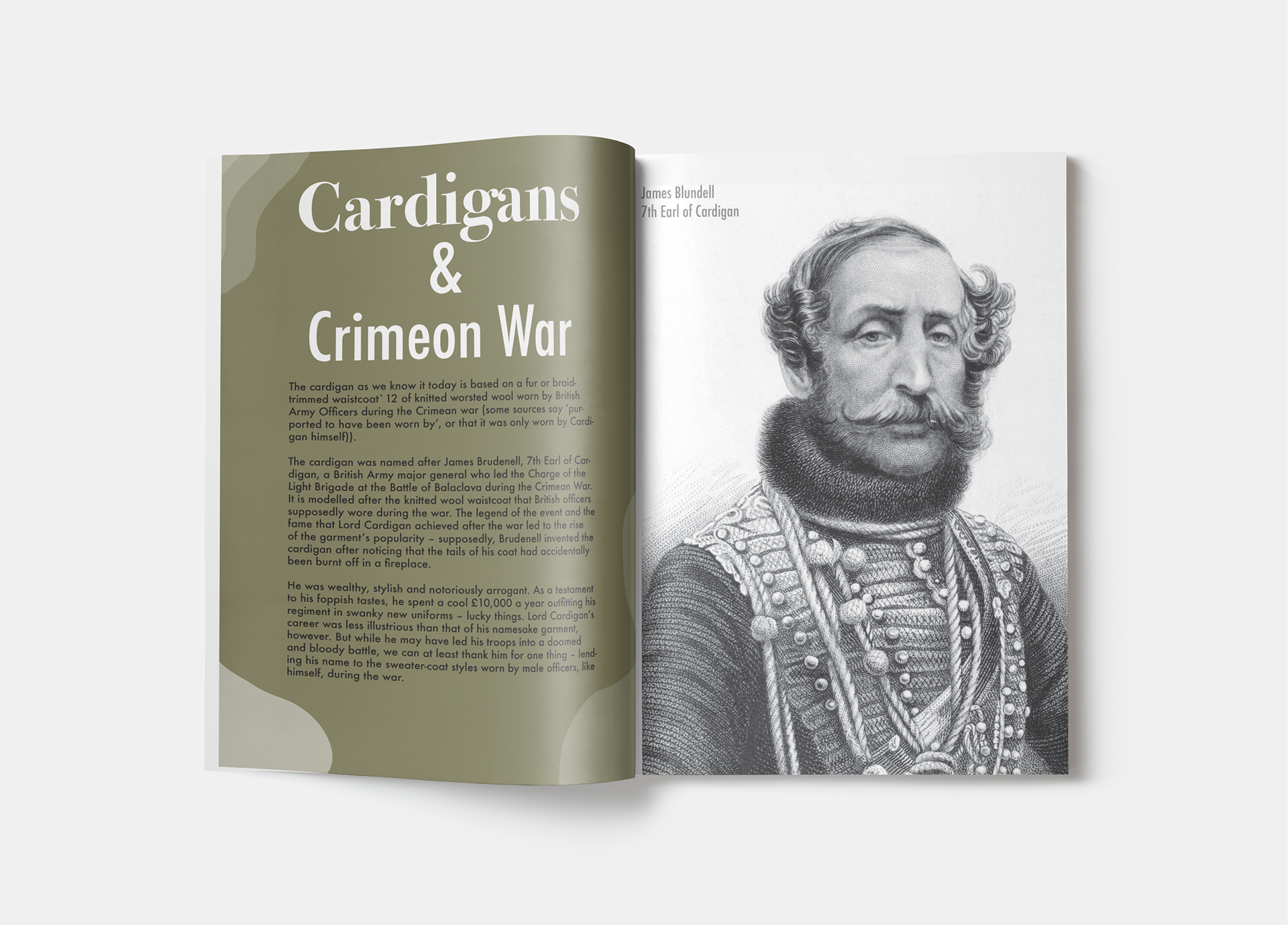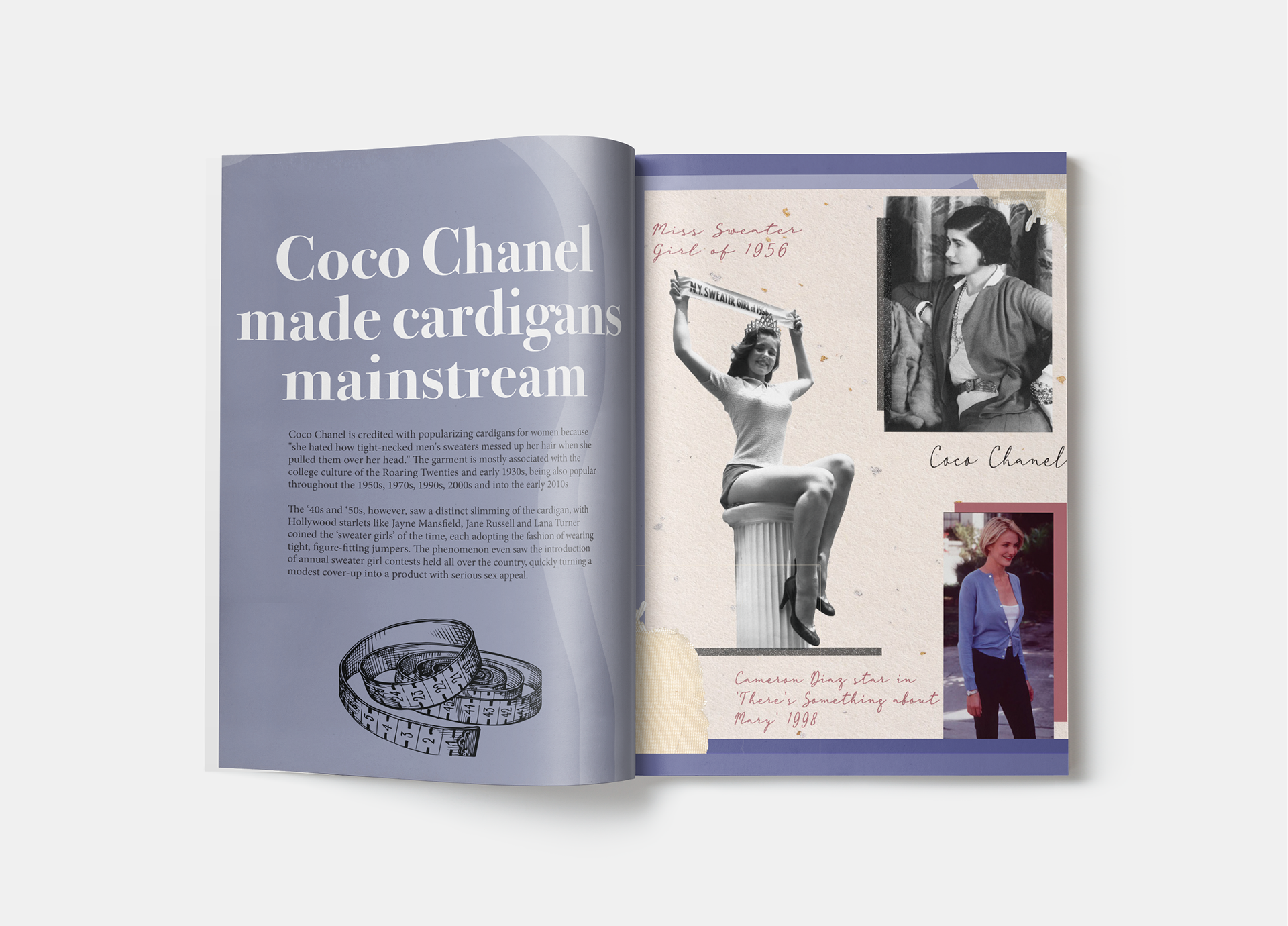A zine about cardigans that includes the history, pop culture, and how they were made.