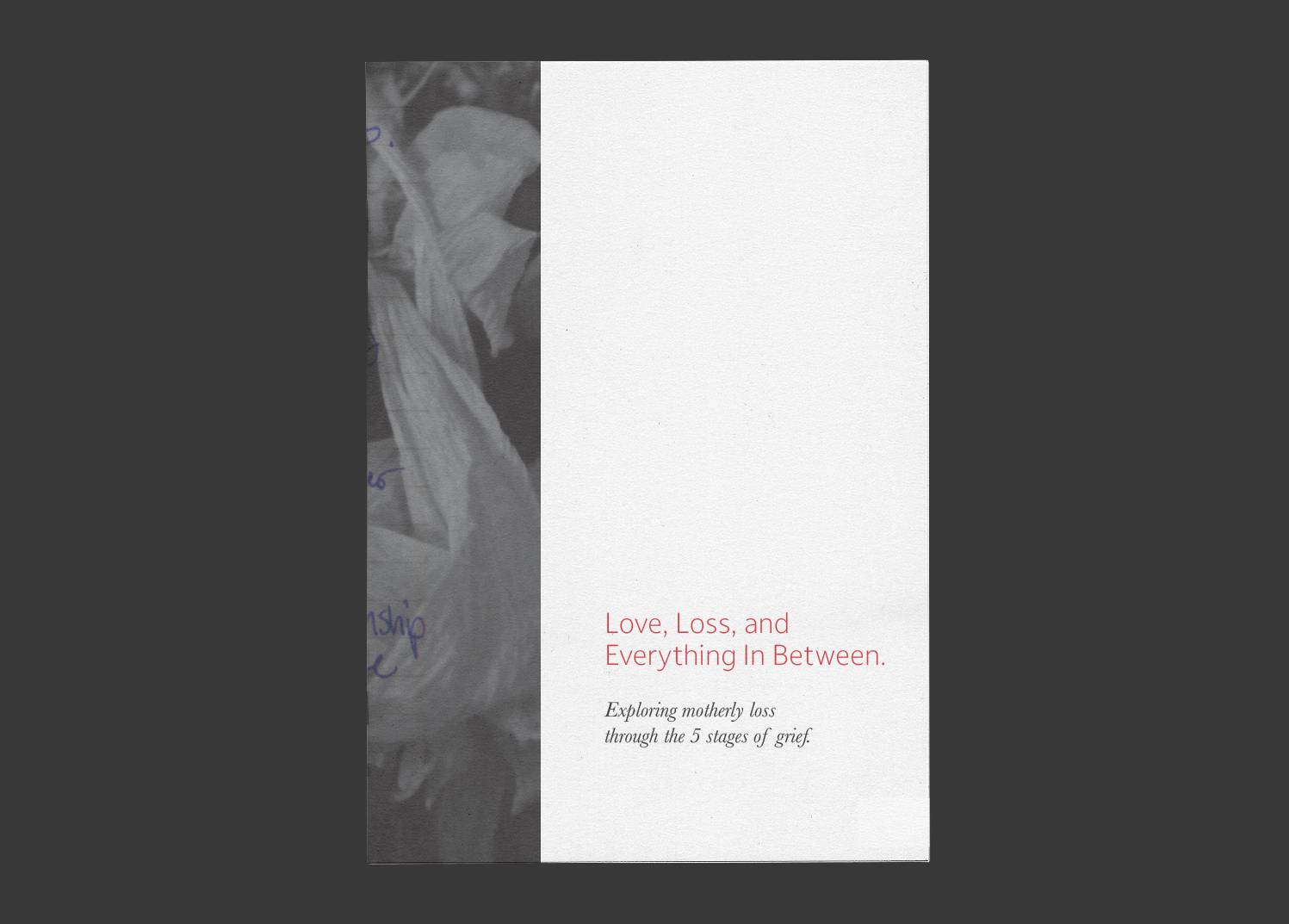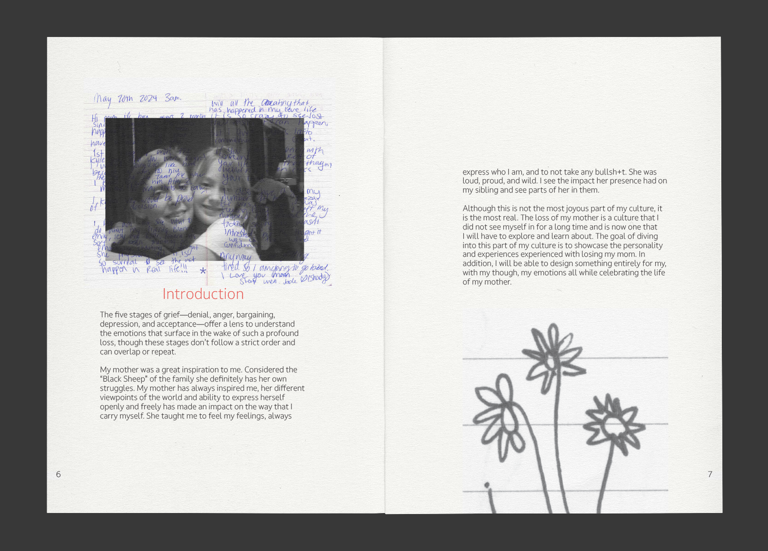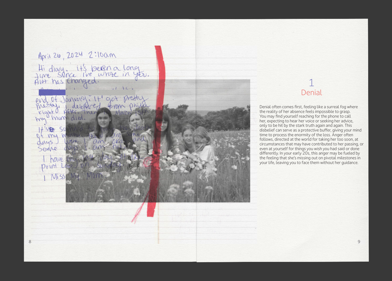 A zine exploring motherly loss through the five stages of grief.