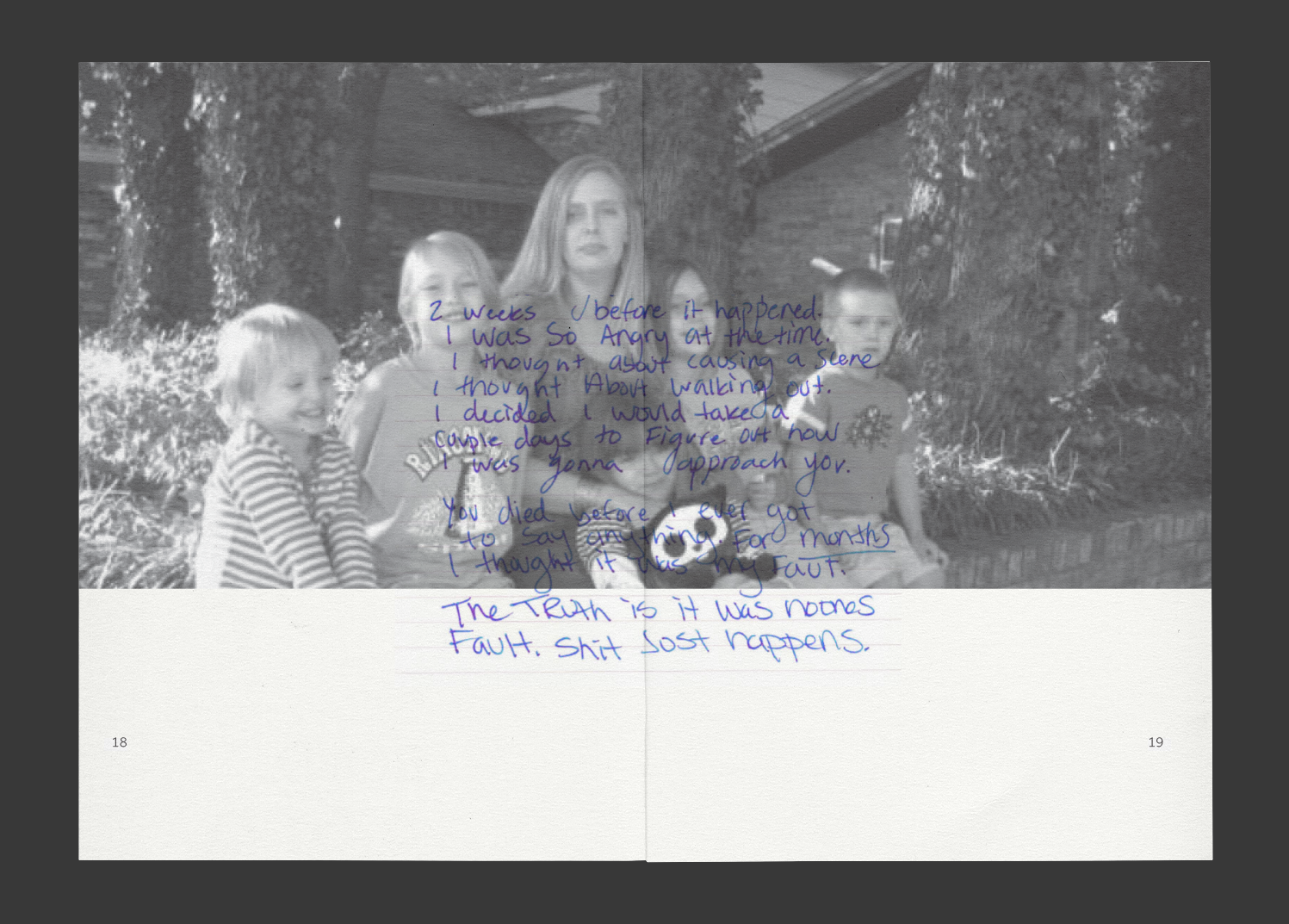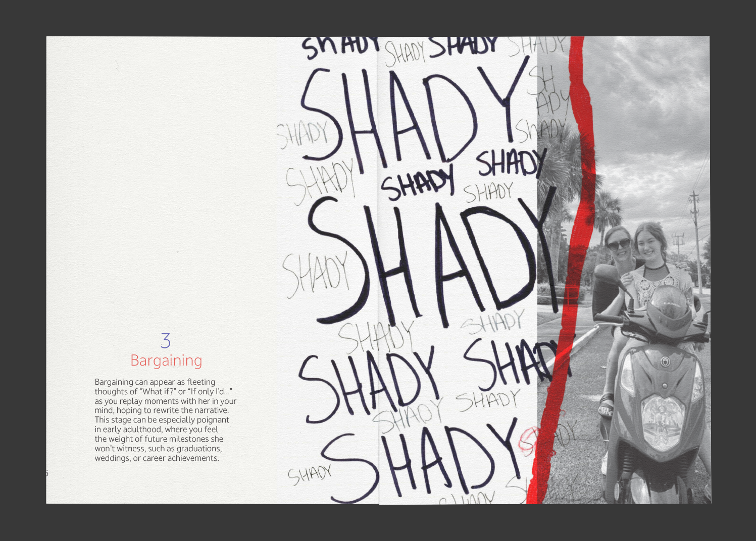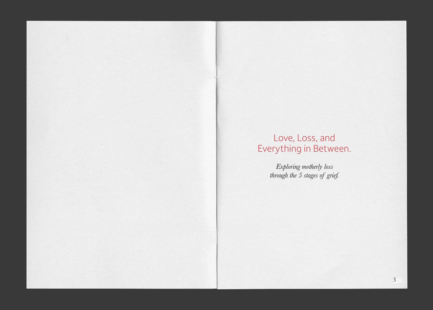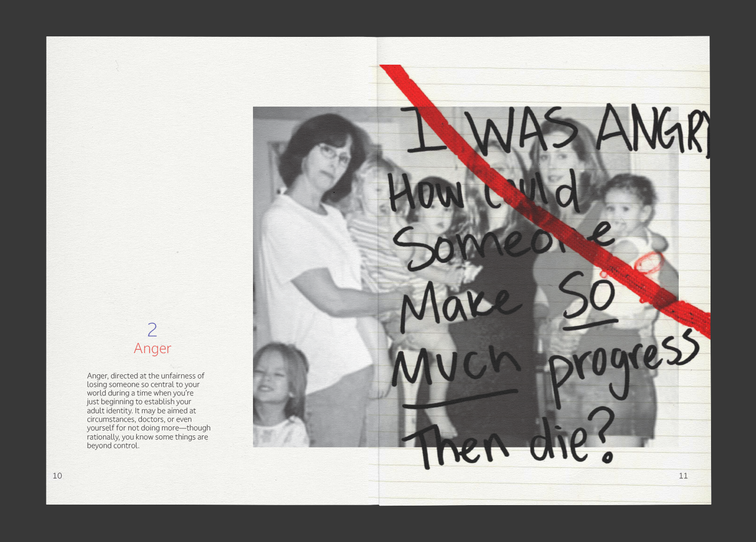 A zine exploring motherly loss through the five stages of grief.